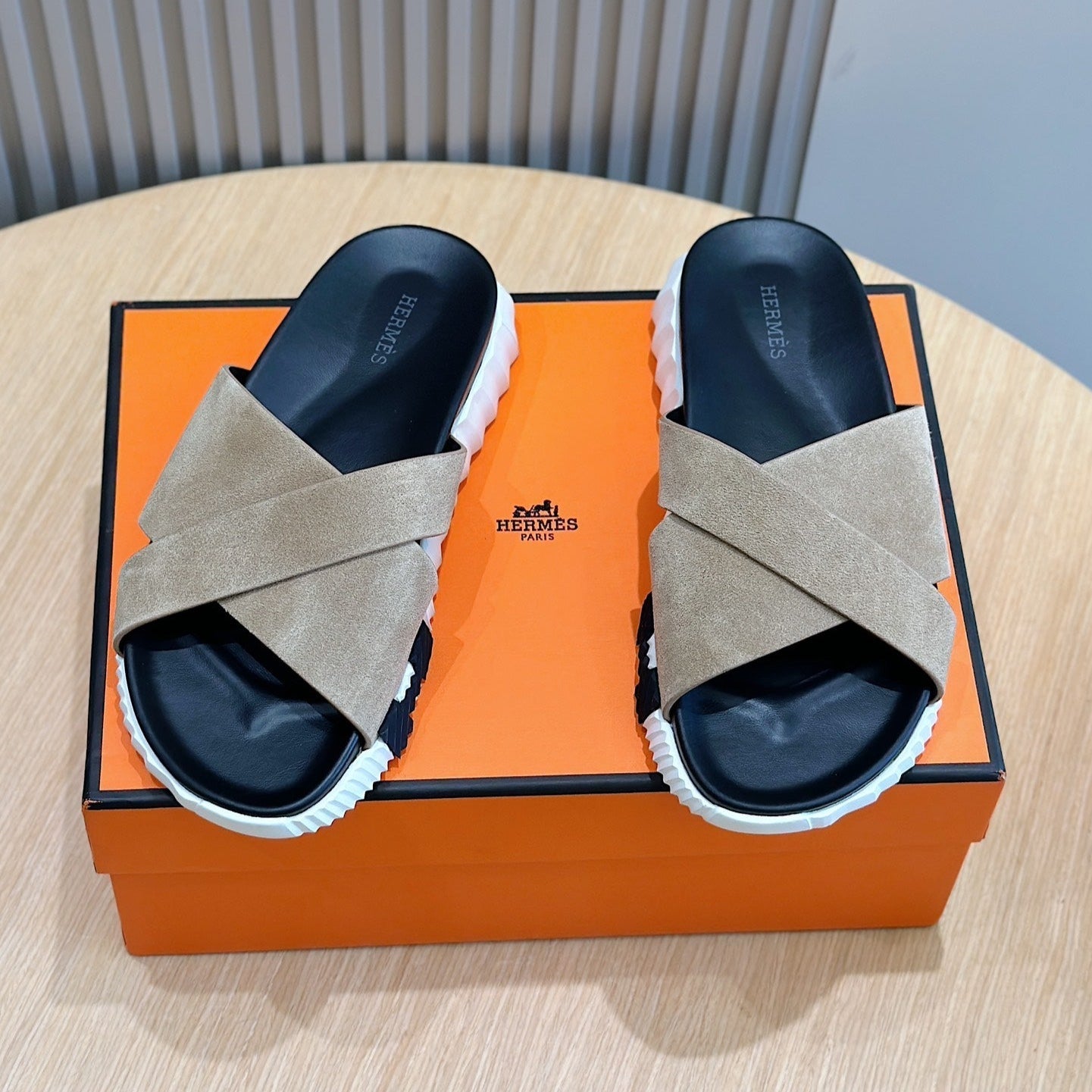 HM Men's Kazimir Slide Grey White Calfskin 562768