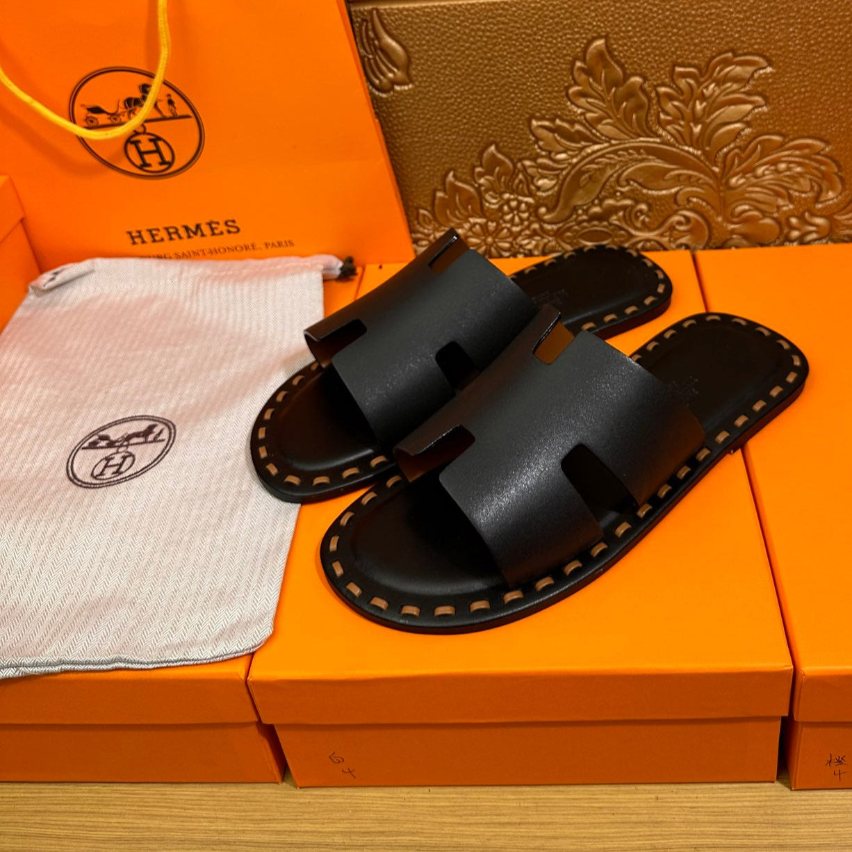 HM Men's Cross Strap Slide Black Cowhide 544100
