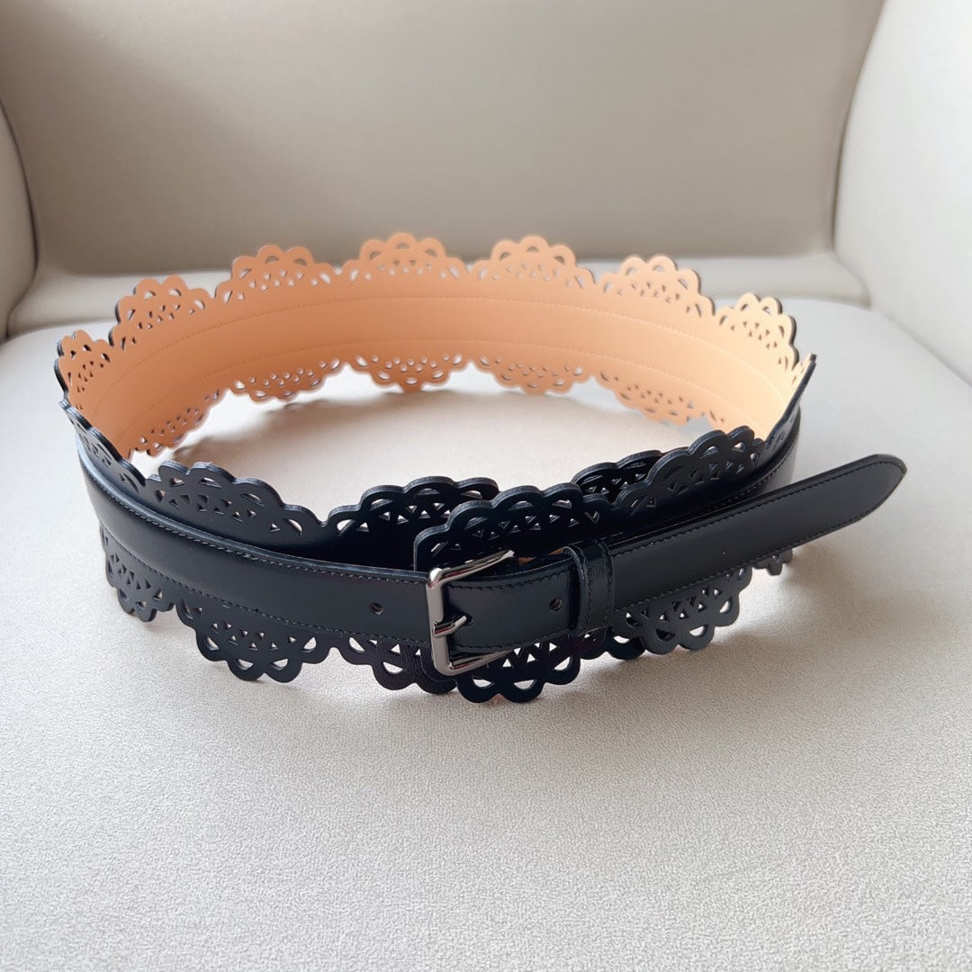 ALAIA Medium Hobo Flat Bag Metal Rivet Black Calfskin 243053