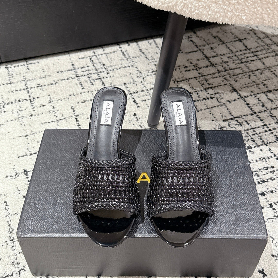 ALAIA MARY JANE FLATS black woven calfskin pattent