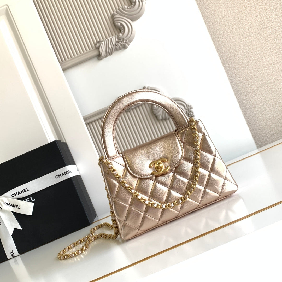 cc 24a nano 19cm kelly shopper bag metallic rose gold lambskin