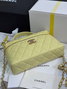 CC 25P Vanity Case 19.5cm Yellow Pastel Calfskin Heart Rhinestone 243607