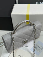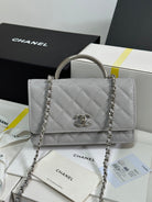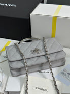 CC 25P Wallet Woc Handle 19cm Light Gray Leather Silver Hardware 243454