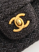 cc 25S Flap Bag 20cm Black Raffia