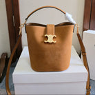 Celine 2025 Bucket Louise Bag 19cm Pecan Suede Calfskin 276314
