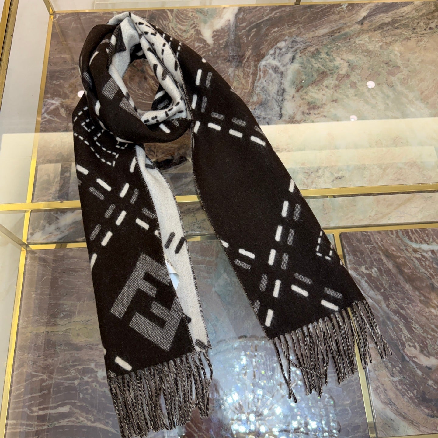 FF 210CM Scarf Black Mix Ivory Sheep Wool 100250