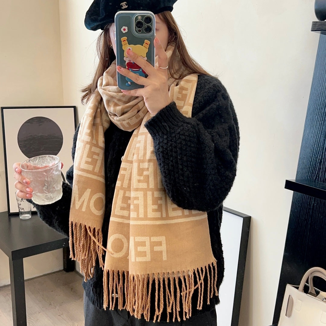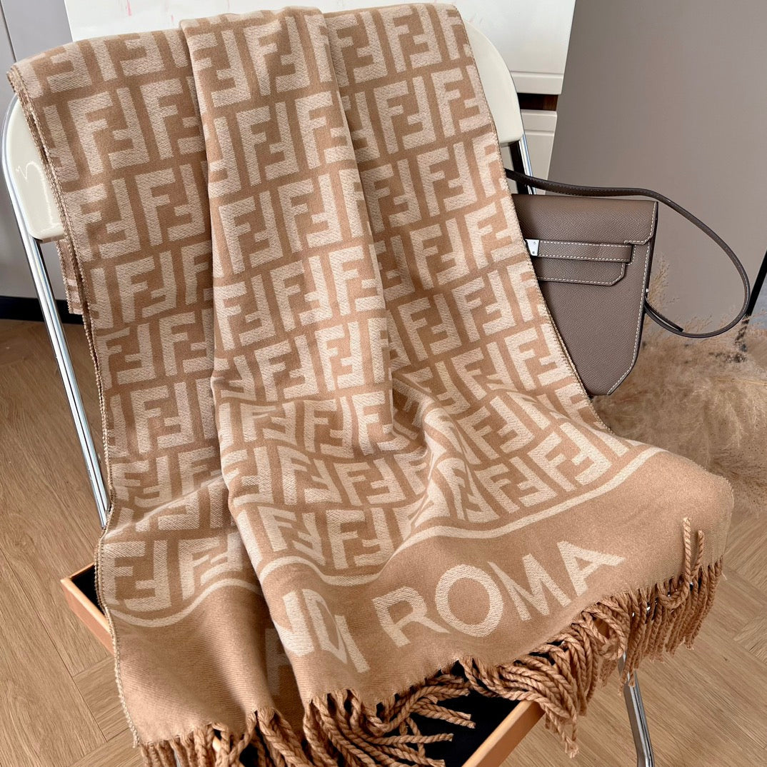 FF Jacquard 180CM Scarf Beige Wool 103631