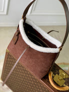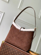 LV 2025 Ski CarryAll PM Bag 34cm Chocolate Brown Suede Cowhide 347358