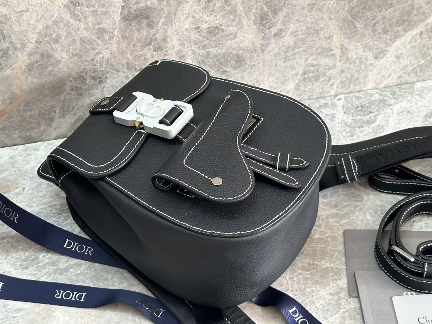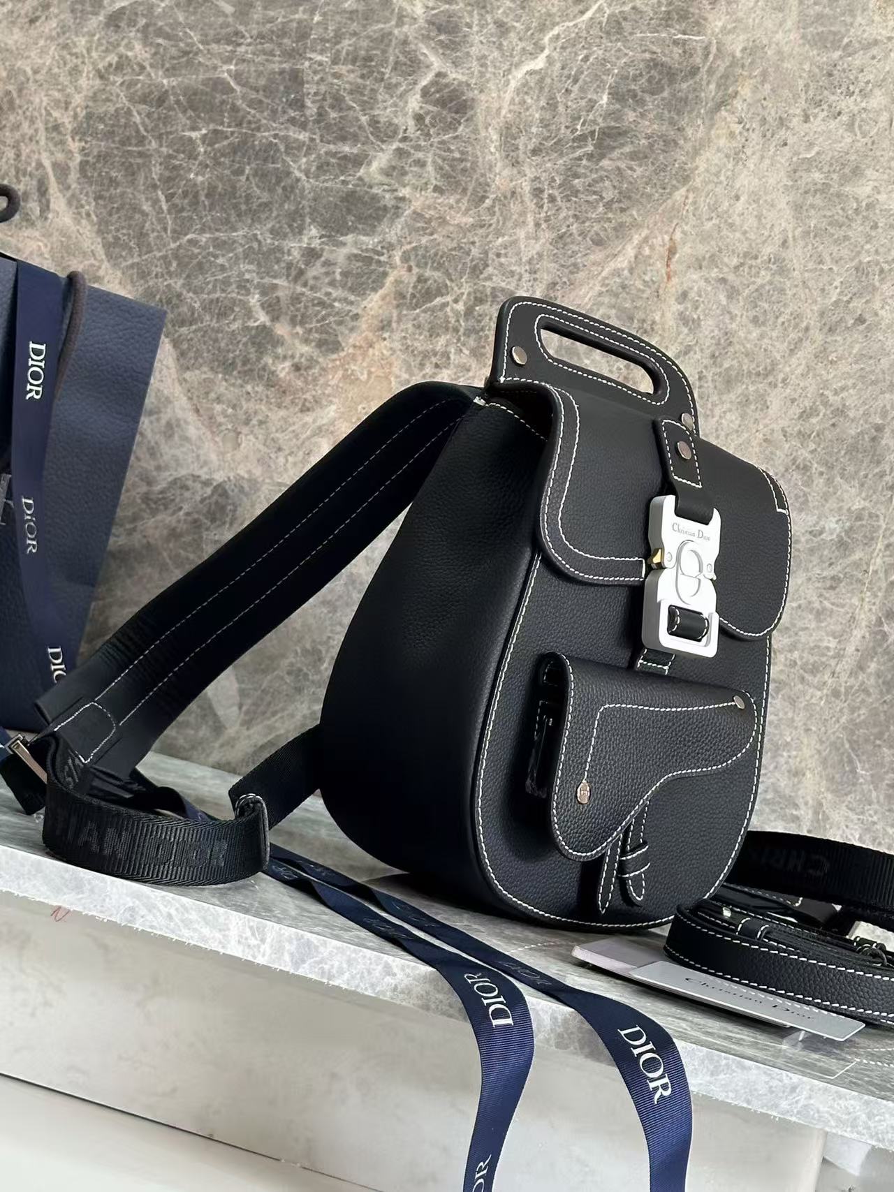 CD Caro Macrocannage Small Bucket Bag Black Lambskin