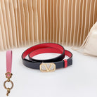 Gold Vlogo and Silver Hardware Buckle Black Red Calfskin 20mm