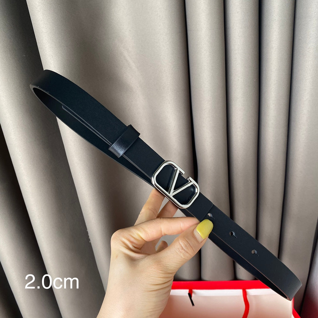 Gold Vlogo and Silver Hardware Buckle Black Calfskin 20mm