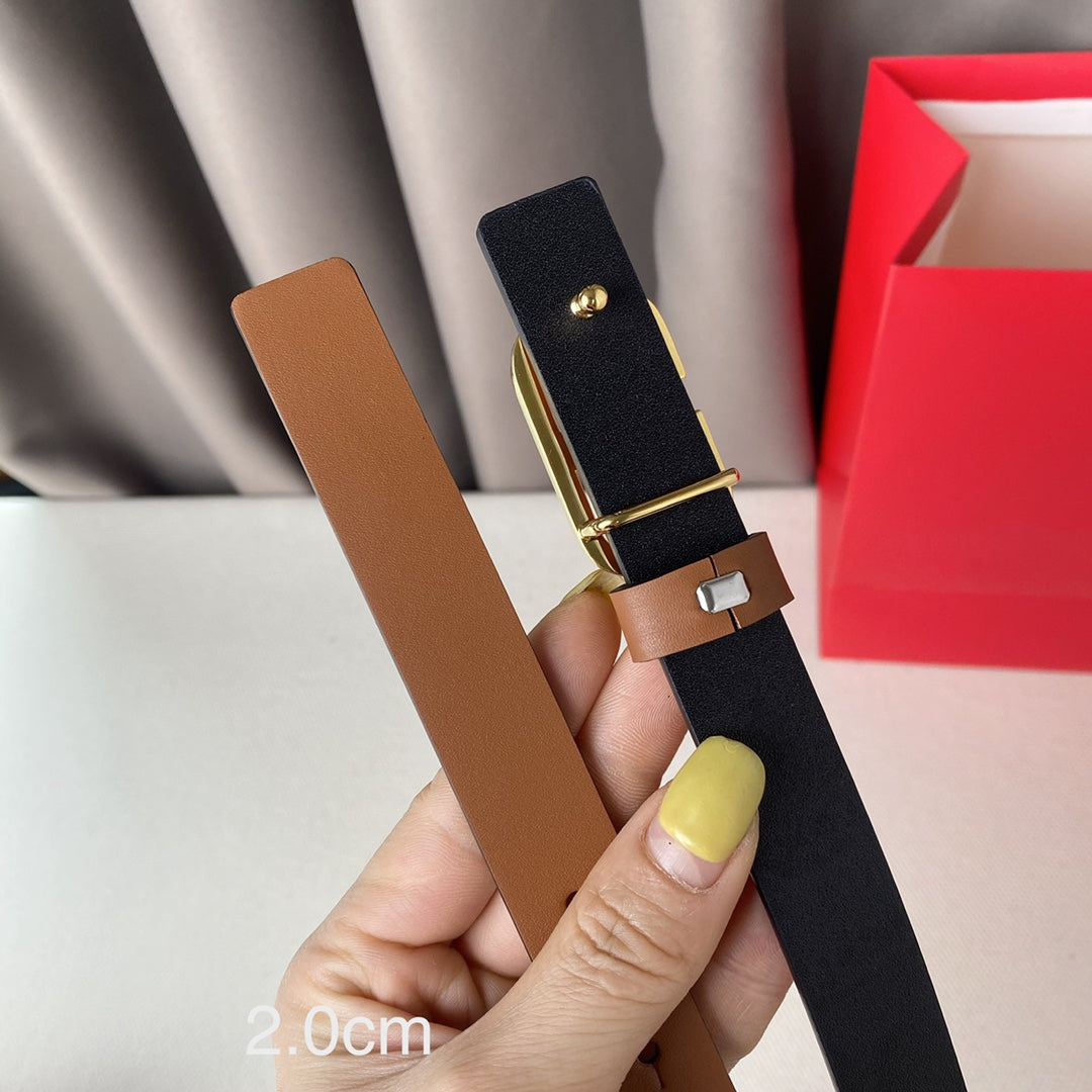 Gold Vlogo and Silver Hardware Buckle Black Red Calfskin 20mm