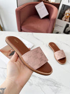 Celine 25C Slippers Pink Pastel Monagram Silk with Calfskin 238146