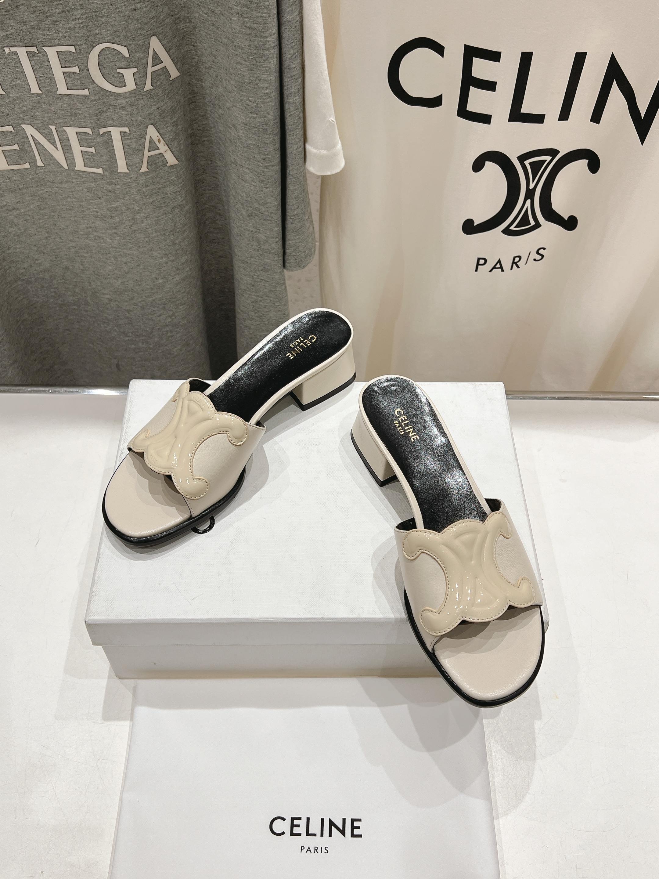 CELINE Block Wedge Mule Cream Calfskin 235719