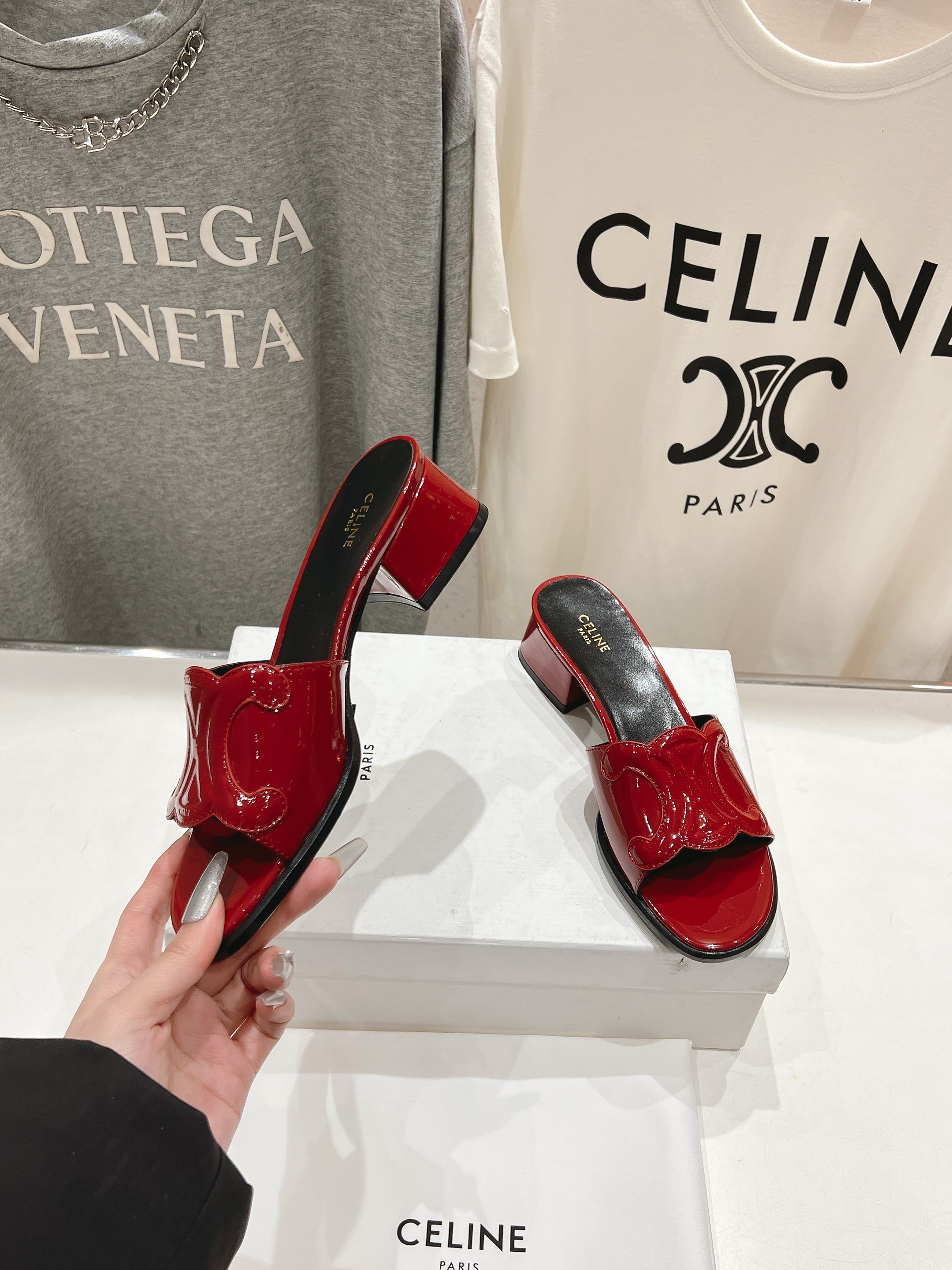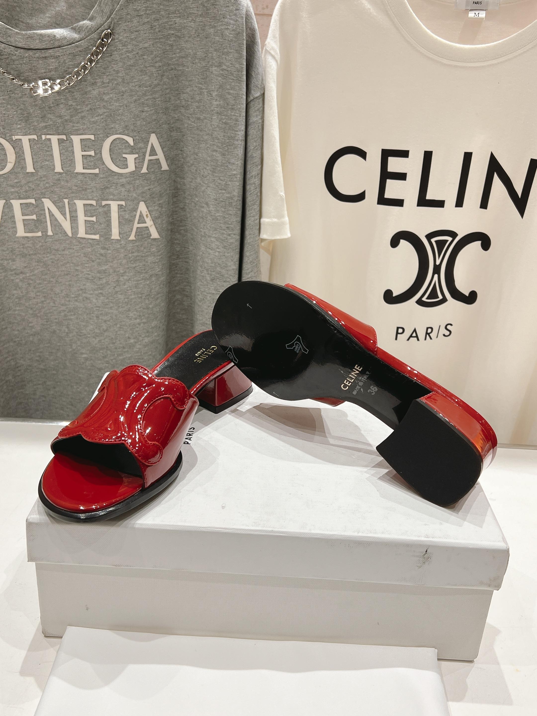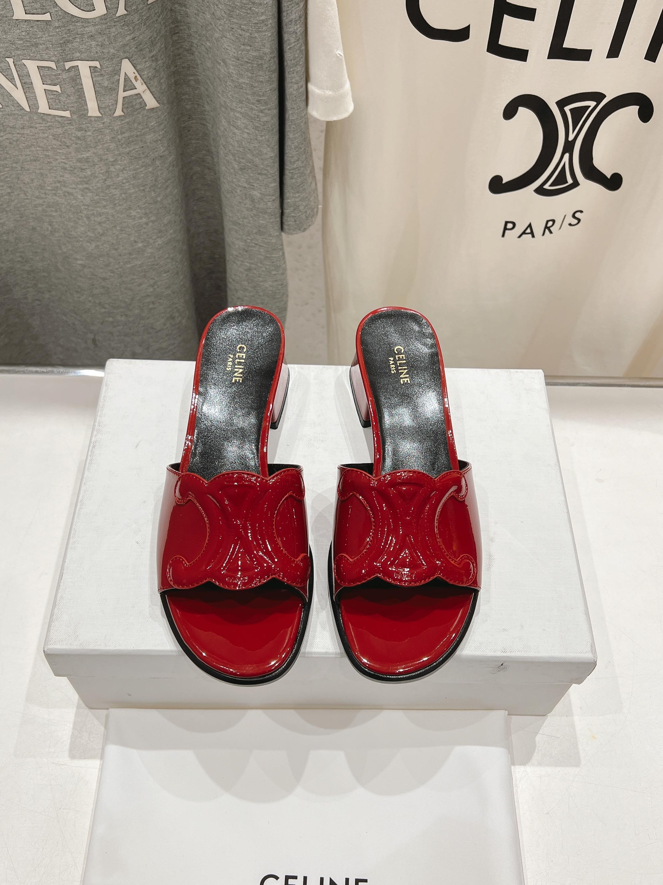 CELINE 25C CLEMENCE MULE RED PATENT LEATHER 236750