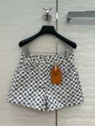 LV 25 Advanced Logo Denim Shorts Black White Poliester