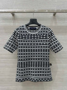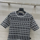 LV 25 Geometric Wave Pattern Round Neck Knitted T- Shirt Black Wool