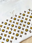 LV 25 Rainbow Smiley Face Print Short Sleeves Shirt White Cotton