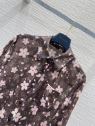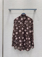 LV 25 Slightly Transparent Flower Shirt Brown Polyester