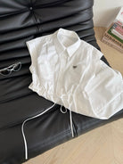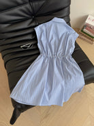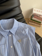 LV 25 Triangle Metal Logo Decorated Dress White Blue Cotton