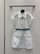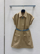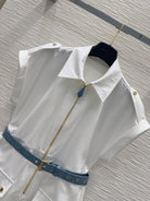 LV 25S Blue Belted Dress White Brown Cotton Polyester