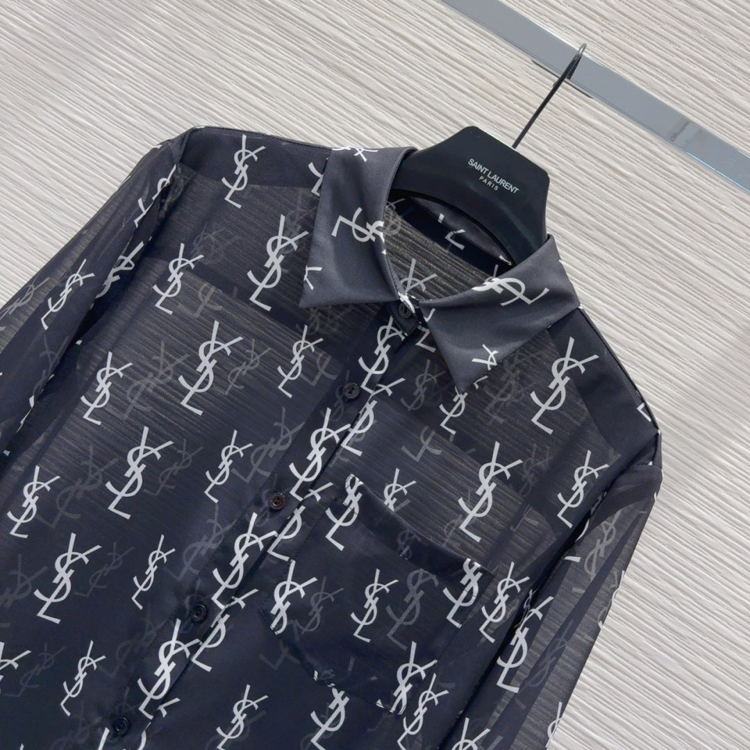 YSL 2025 Polo Collar T-shirt Black and Gray Cotton