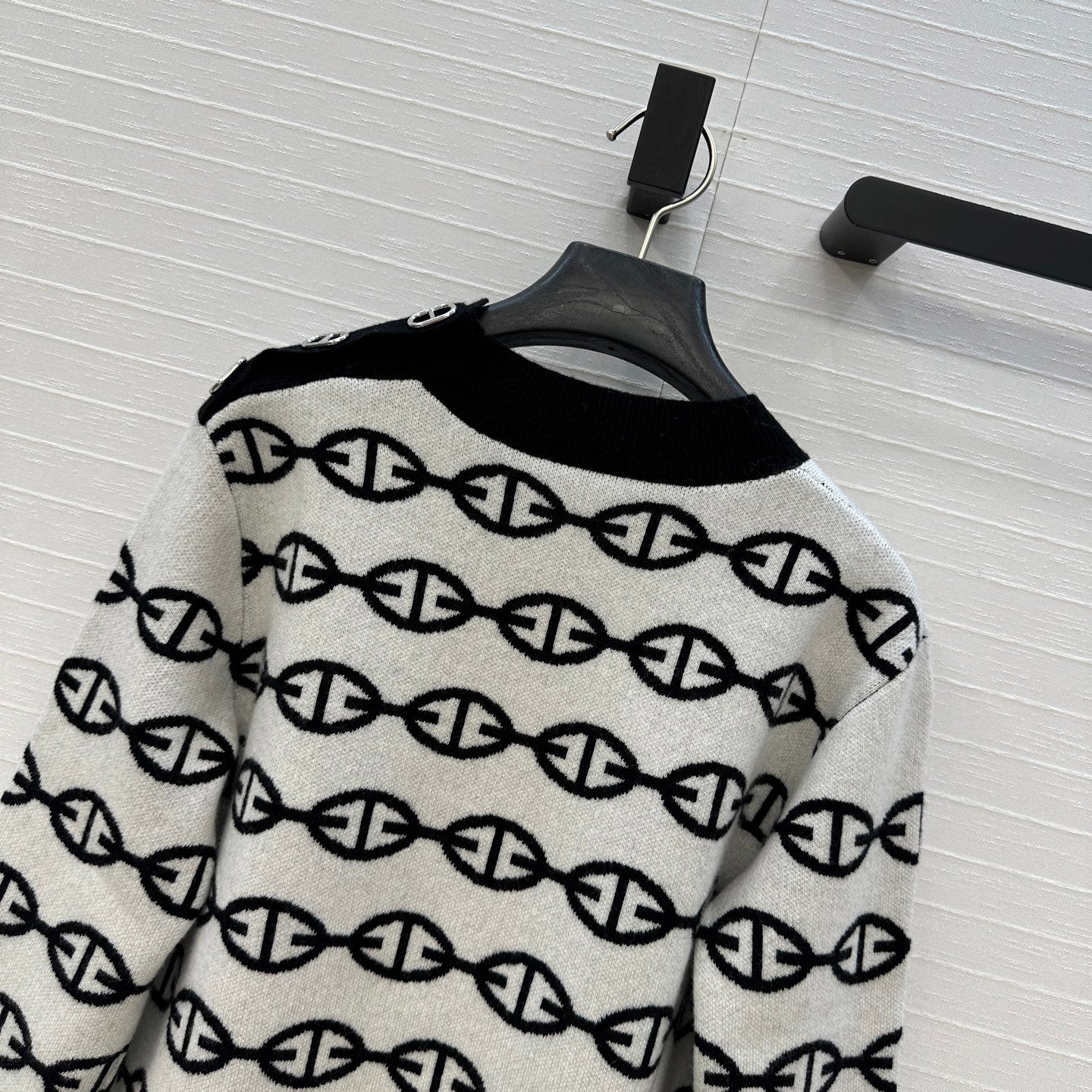 YSL 25 Knitted Logo Vest Blue and White Tencel Wool Linen