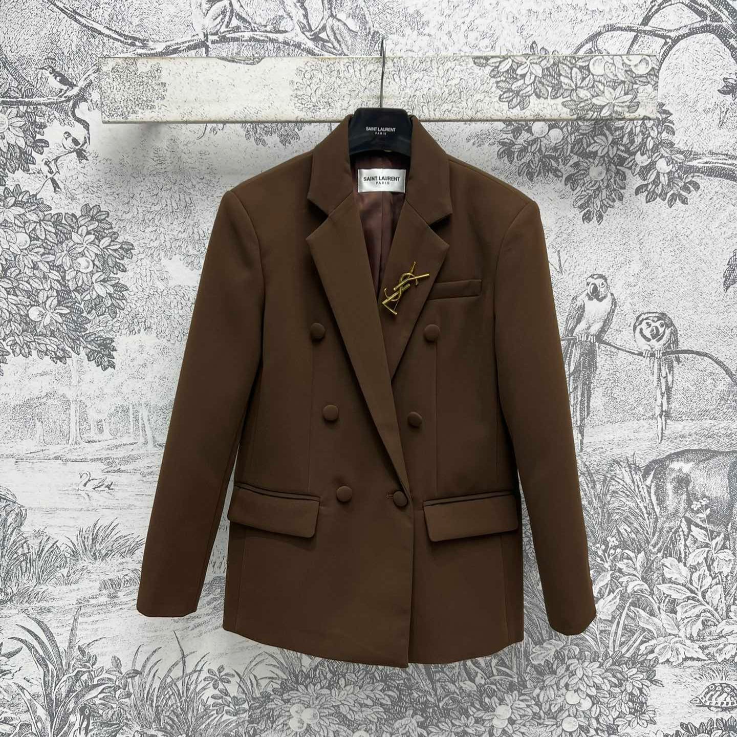 YSL 25 Cracked Pleated Jacket Brown Acetate