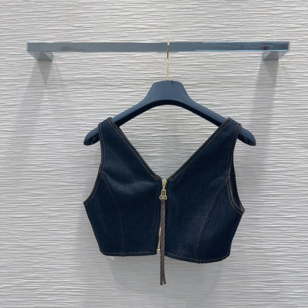 LV 25 Cherry Denim Vest Jacket Blue Cotton