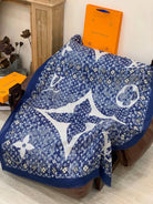 LV Monogram Scarf 200cm Blue White Cashmere 969183