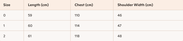Size : 0,1,2