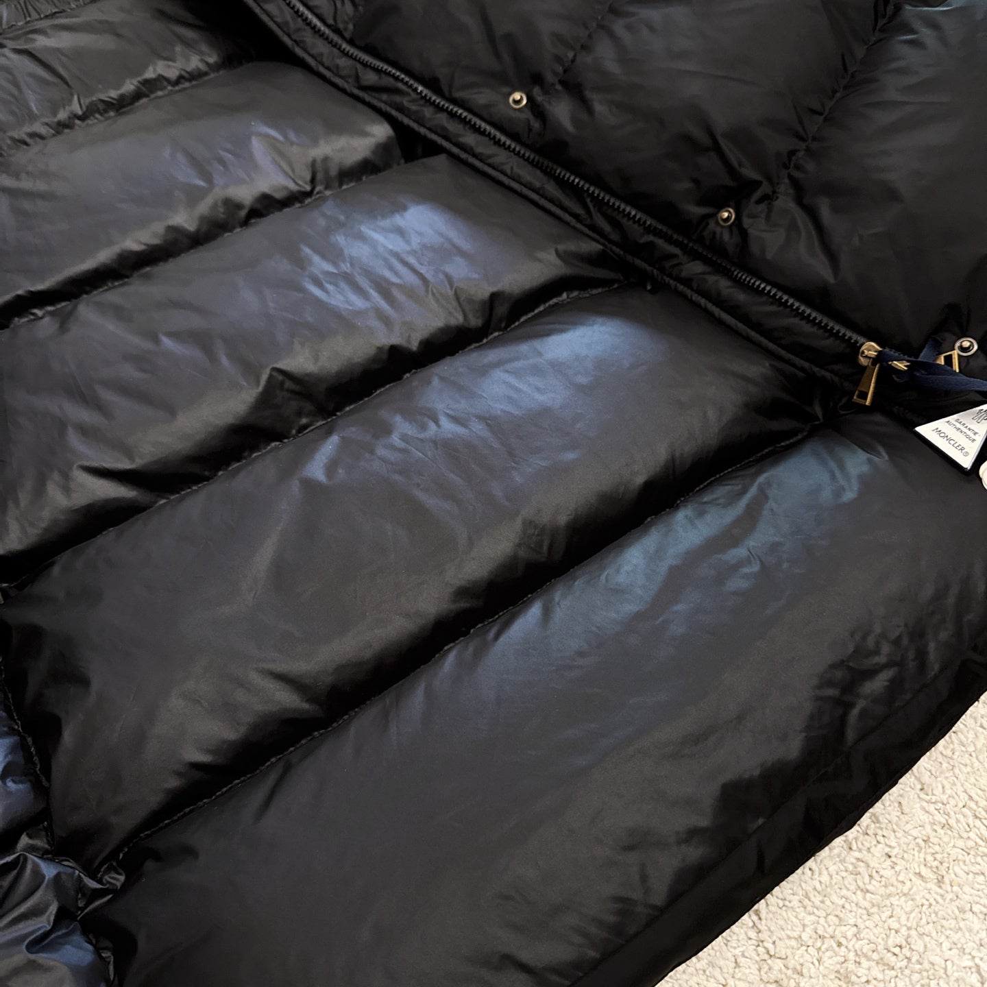 Moncler 2025 Chamer Wool-Trimmed Hooded Long Jacket Black Down