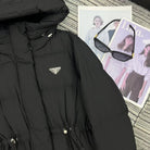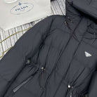 Prada 2025 Drawstring Waist Hooded Jacket Black Down Polyester