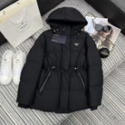 Prada 2025 Drawstring Waist Hooded Mig-length Jacket Down Polyester