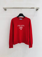 Prada 2025 Long-Sleeved Knit Sweater Dark Blue and Red Wool