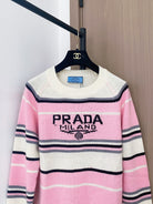 Prada 2025 Striped Long-sleeved Sweater Pink White Wool Cashmere