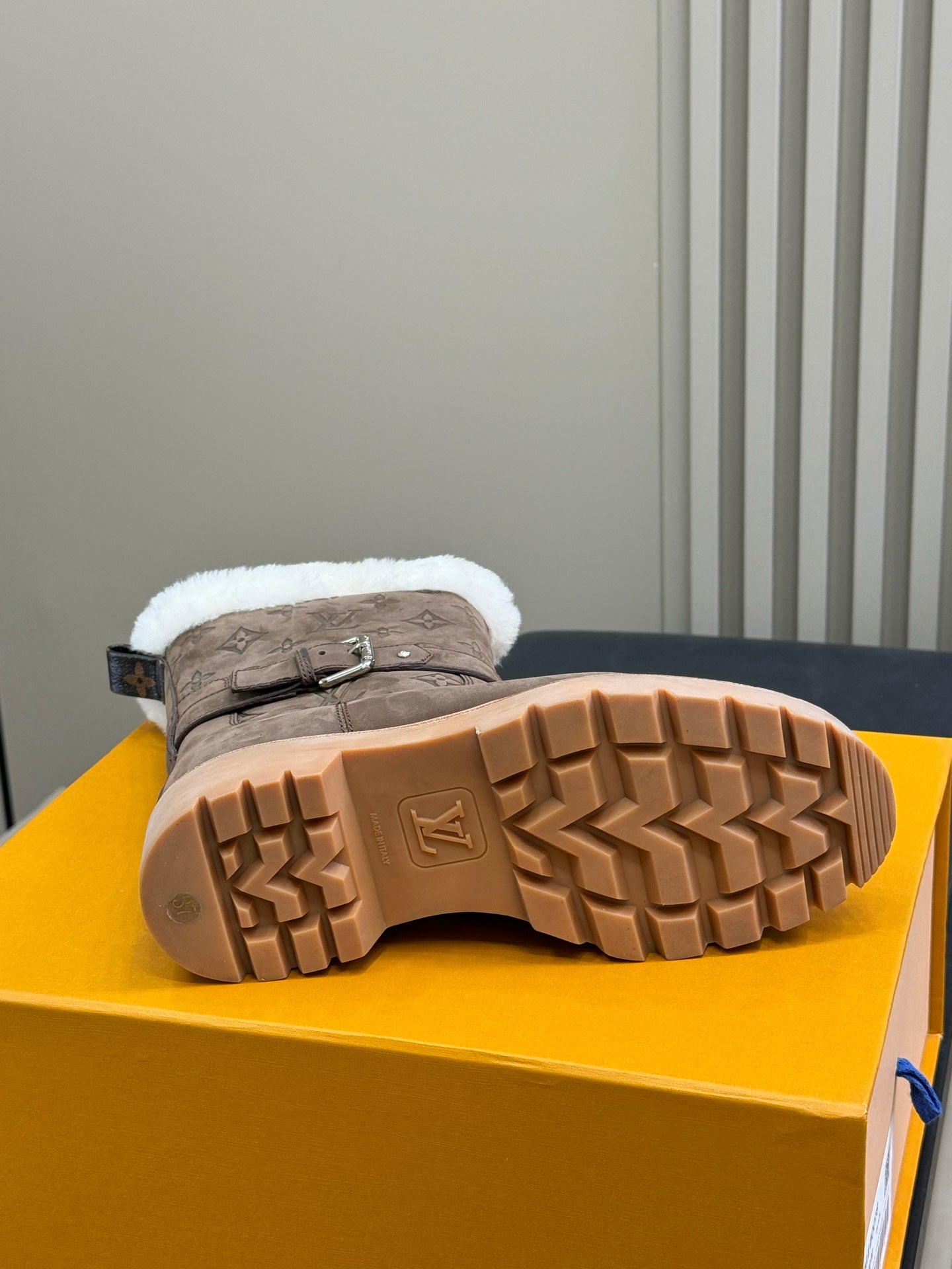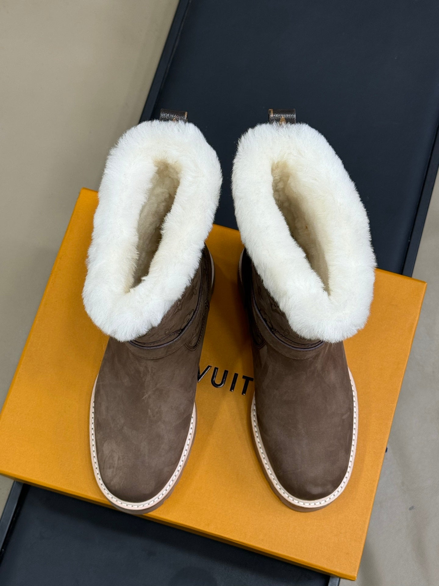 LV 25 Shearling Boots Dark Brown Suede 576934