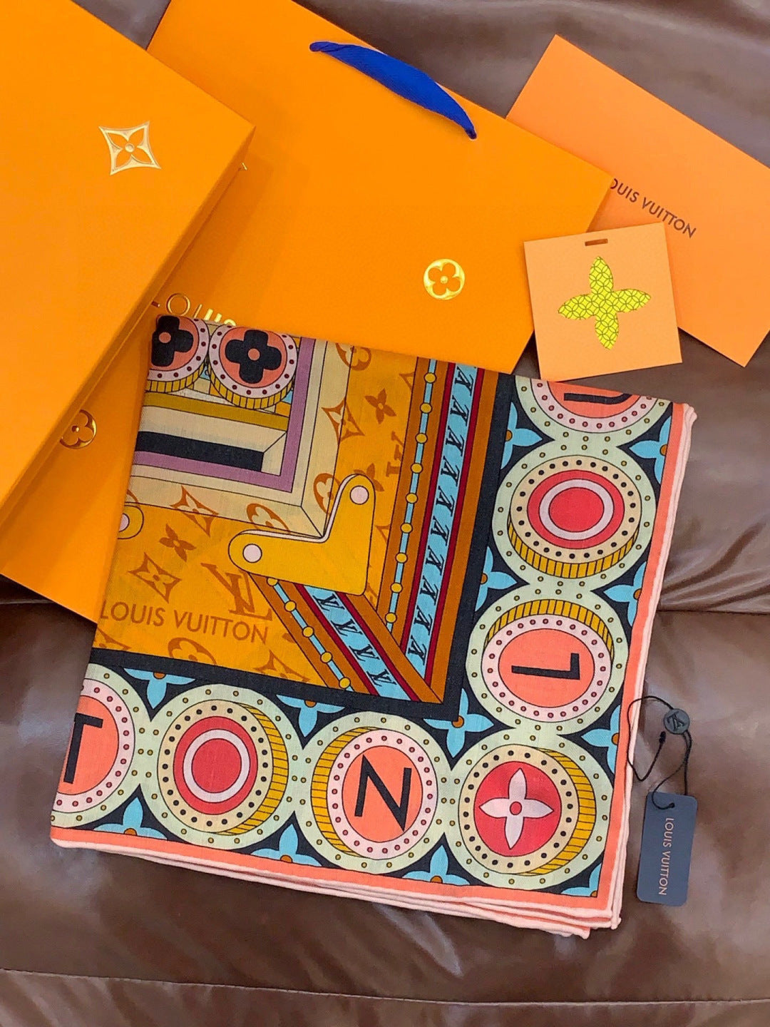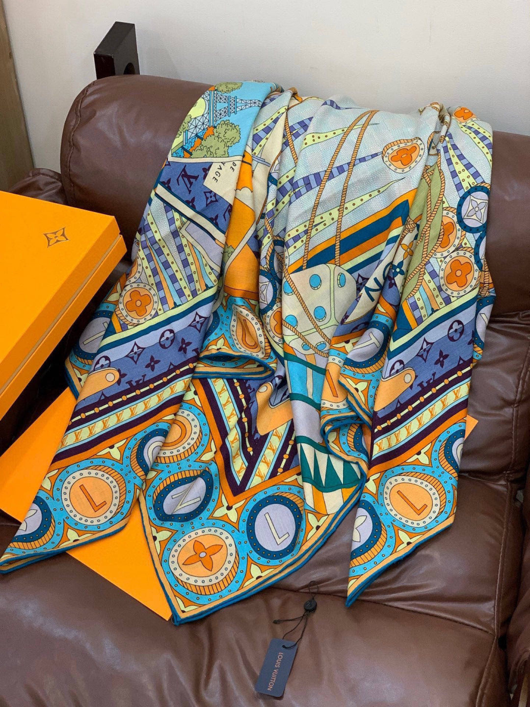 LV Double-sided Scarf 135cm Multicolor Silk Cashmere 973070