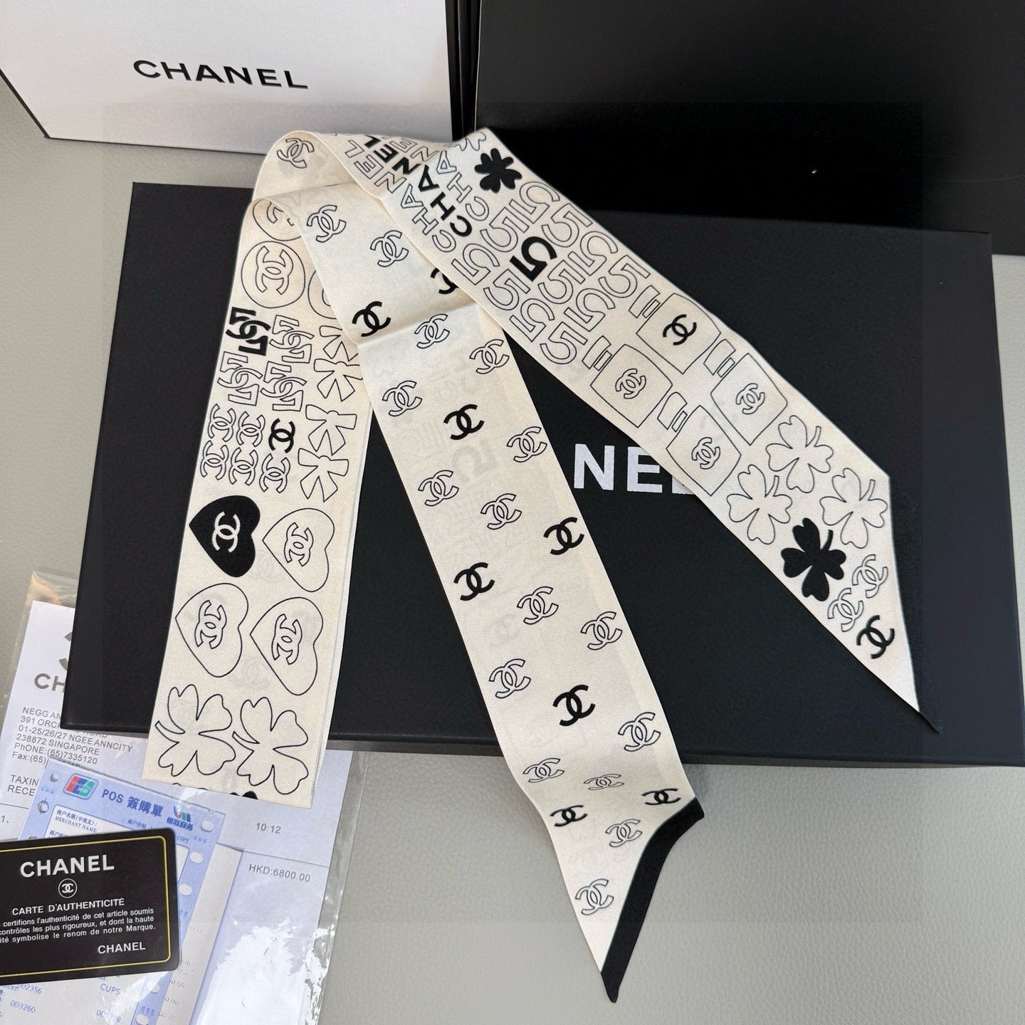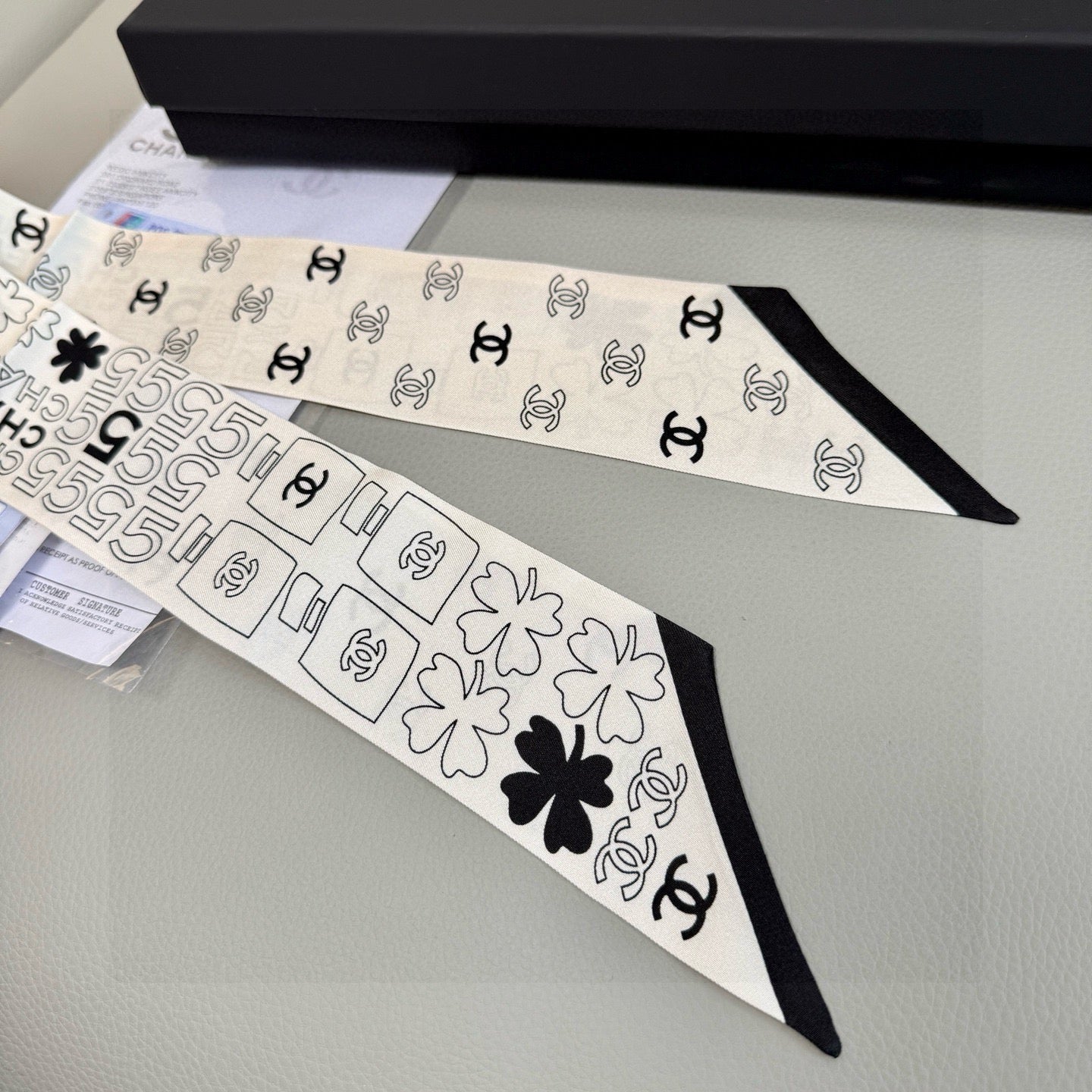 CC Twilly Mini Scarf 120cm White Black Mulberry Silk 953291