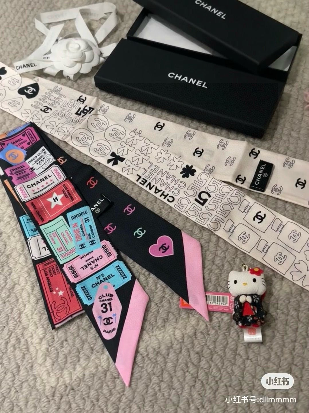 CC Twilly Mini Scarf 120cm Black Pink Mulberry Silk 968852