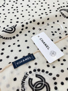 CC Square Scarf 140 CM In White Mix Black Cashmere And Silk 398279
