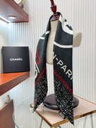 CC Square Scarf 90 CM In Black Mix White Red Cashmere Silk 172078