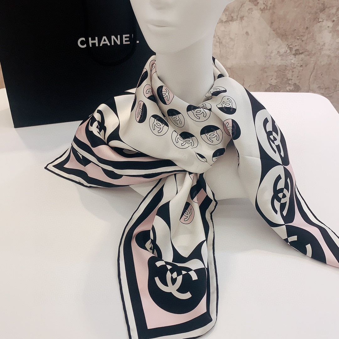CC Square Scarf 90 CM In Light Pink Mix White Black Silk Twill 288717
