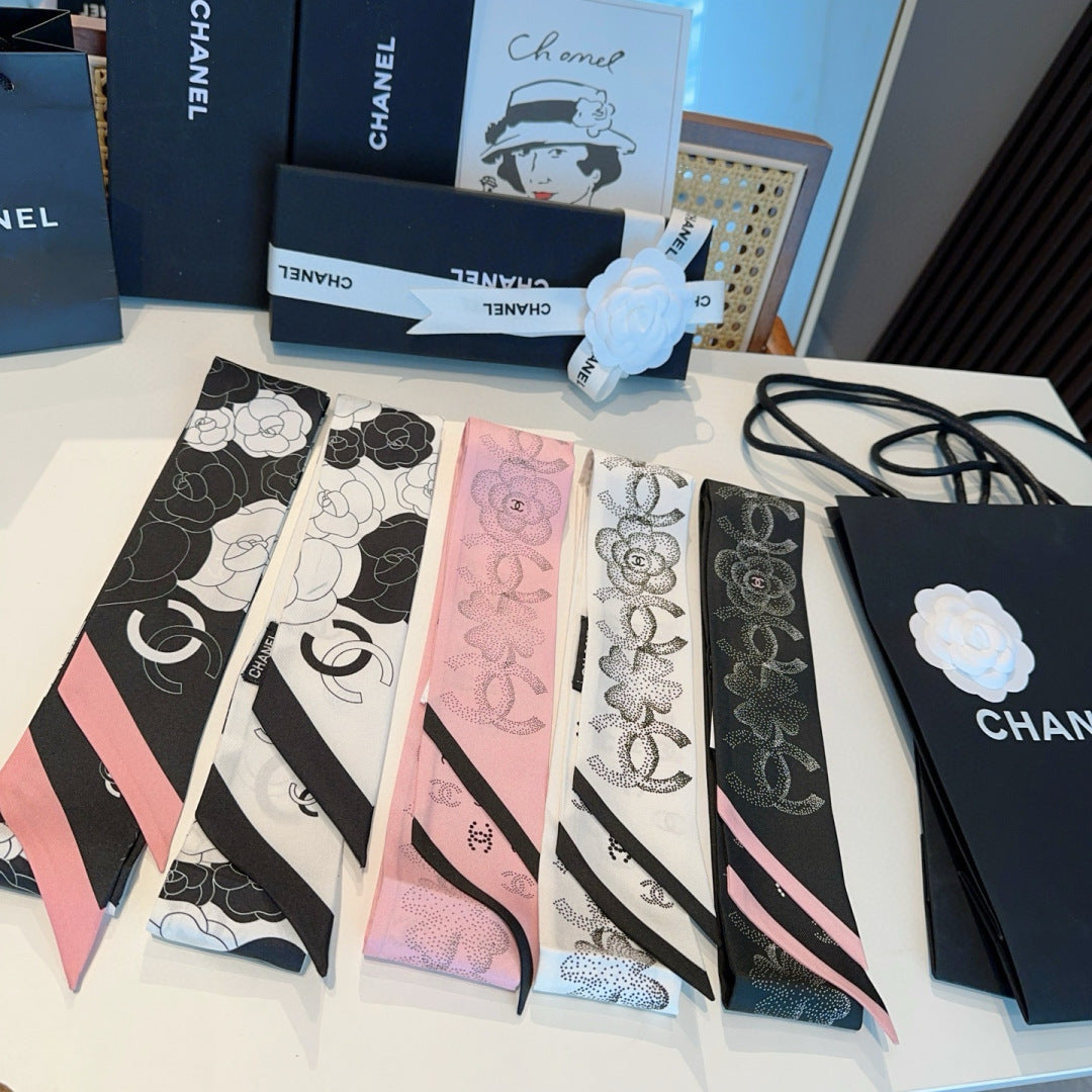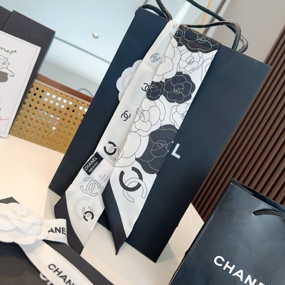 CC Twilly Mini Scarf 120cm White Black Mulberry Silk 953291
