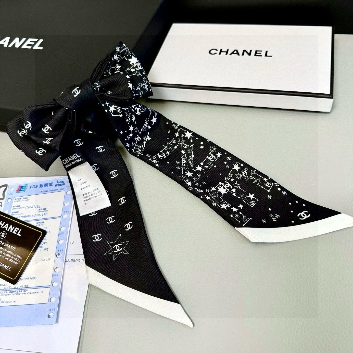 CC Twilly Mini Star Scarf 120cm Black Mulberry Silk 945724