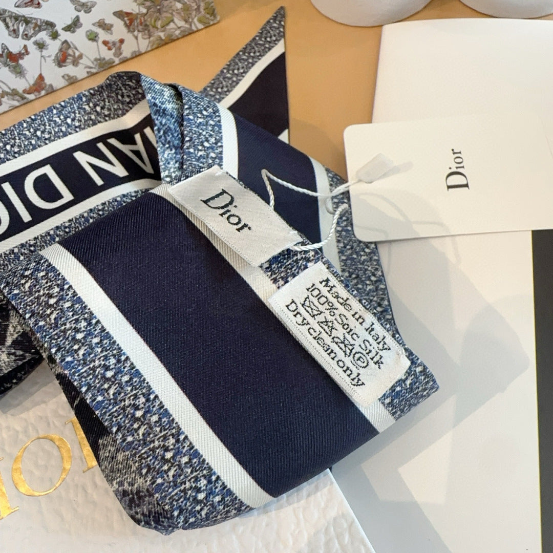 CD Twilly Mini Scarf 100cm Floral Black Mulberry Silk 958865
