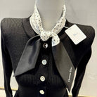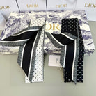 CD Twilly Mini Scarf 105cm Black White Mulberry Silk 957050