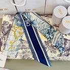 CD Twilly Mini Scarf 105cm Blue Colorful Mulberry Silk 945716