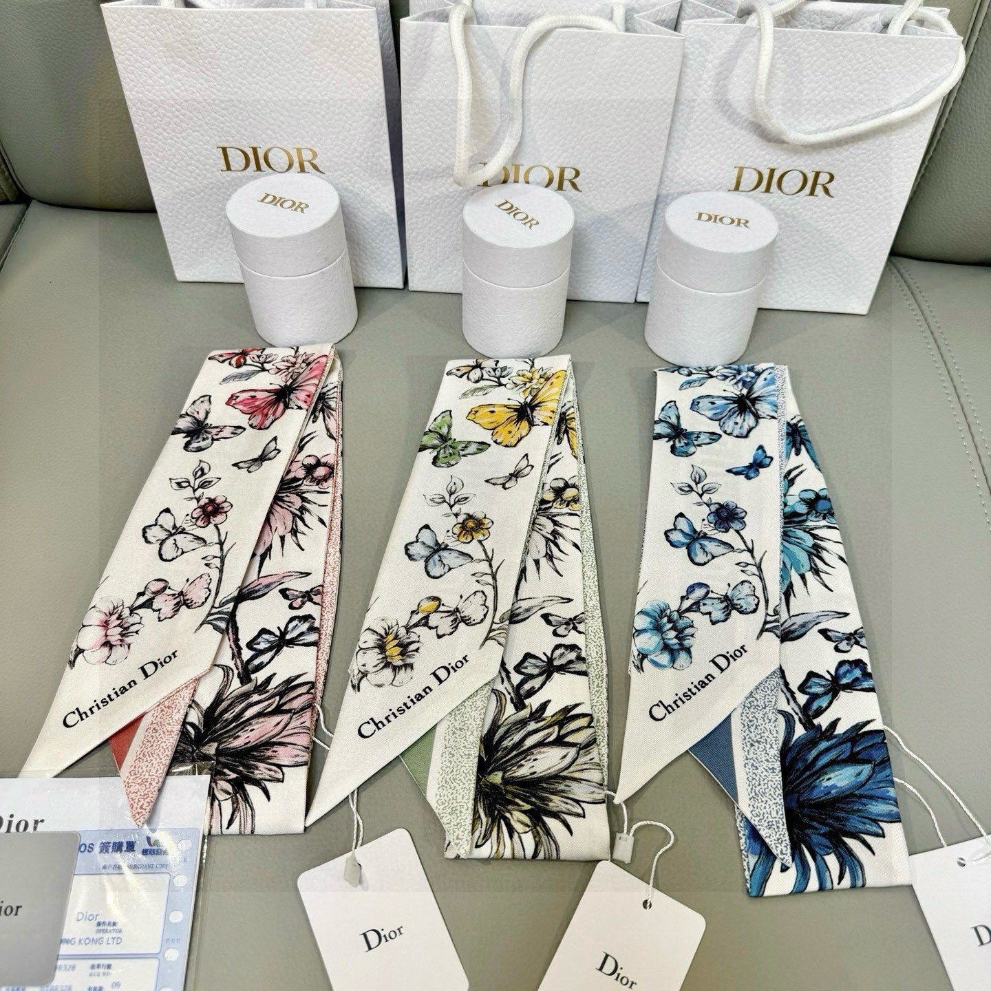 CD Twilly Mini Scarf 105cm Blue Mulberry Silk 935250