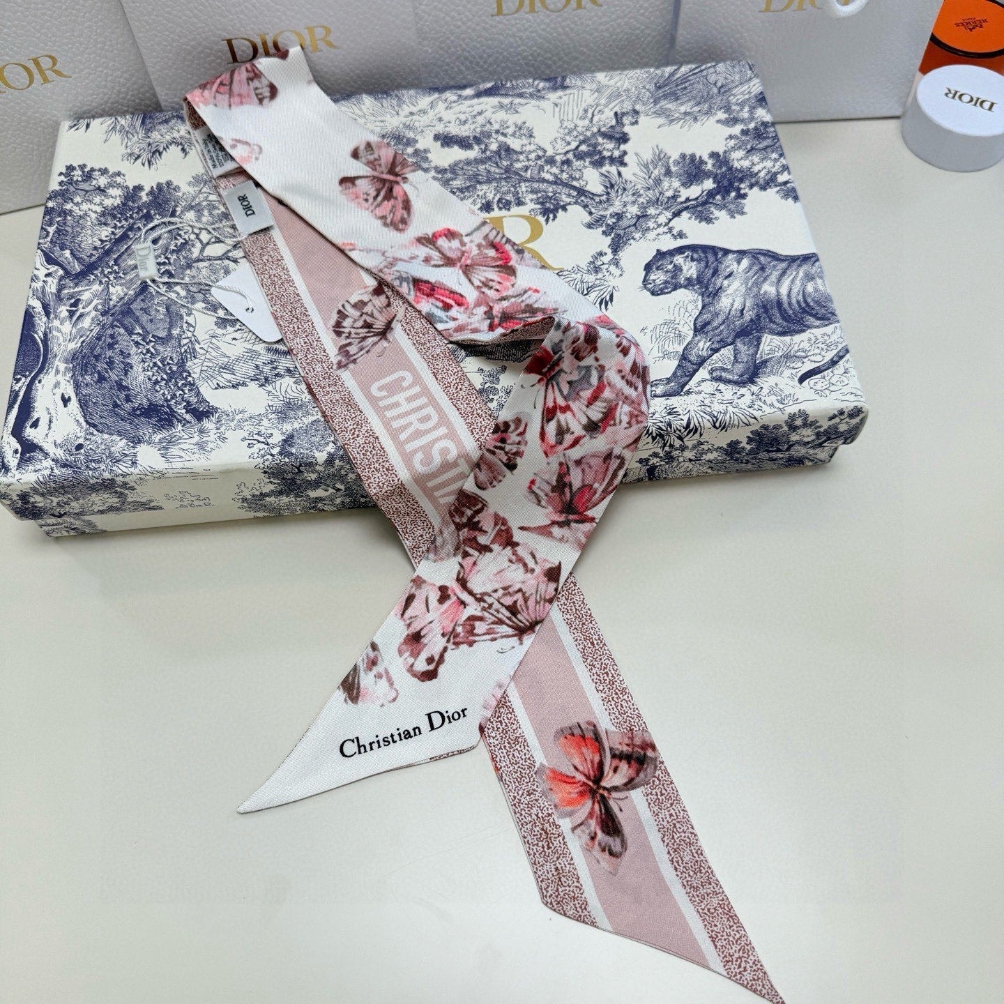 CD Twilly Mini Scarf 105cm Butterfly Light Pink Mulberry Silk 976488
